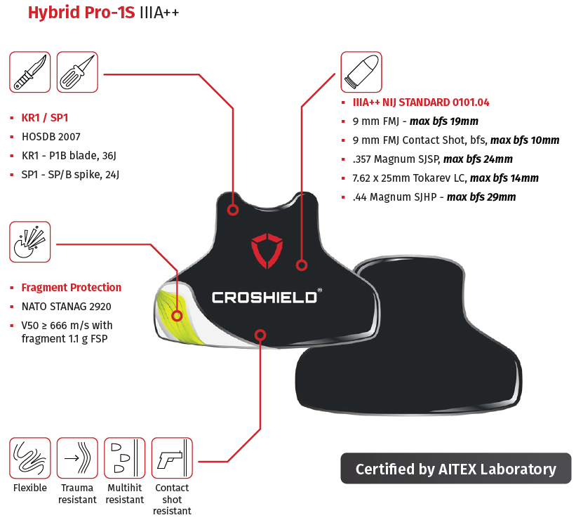 - Special Construction, UD Aramide, Polyethylene and anti-trauma foam
